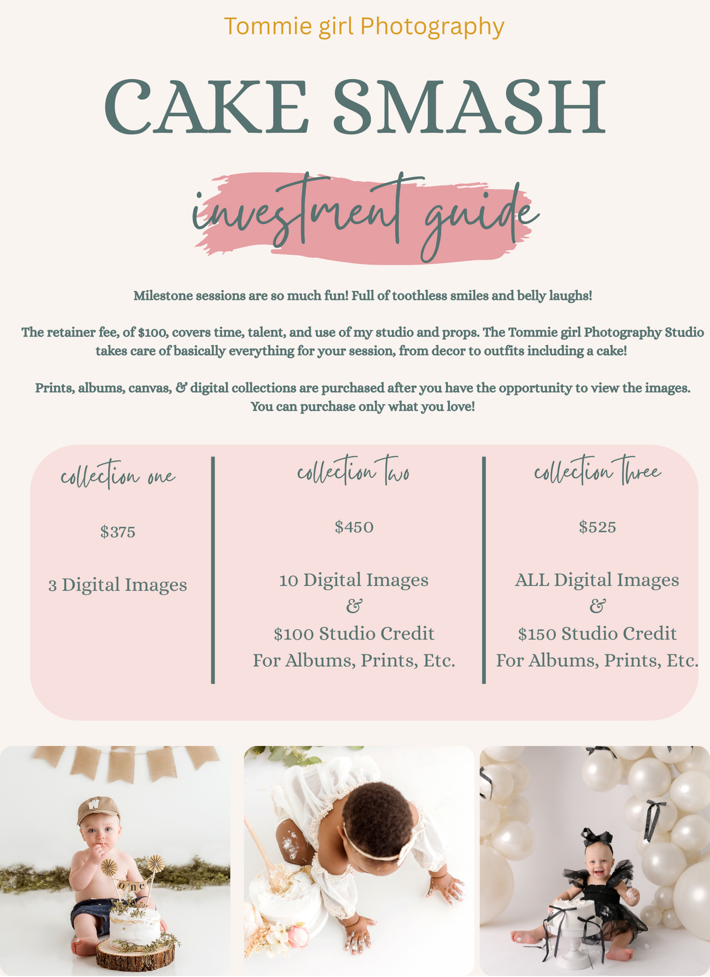The retainer fee, of $100, covers time, talent, and use of my studio and props. The TGP studio takes care of basically everything for your session, from decor to outfits including a cake! As soon as you are ready to book your session, we will send over an invoice for the retainer fee.